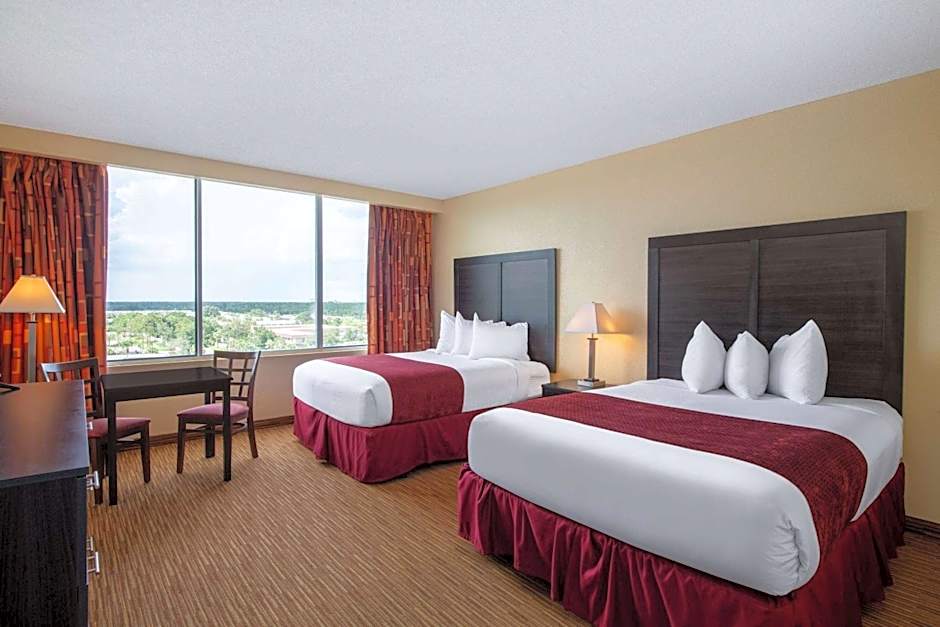 2 Queen Beds, Tower Accessible is 269 square feet and includes a double bed 131-150 width plus desk, satellite tv , cable tv, hairdryer, tea and coffee making facilities , and ironing set and is Wheelchair-accessible.